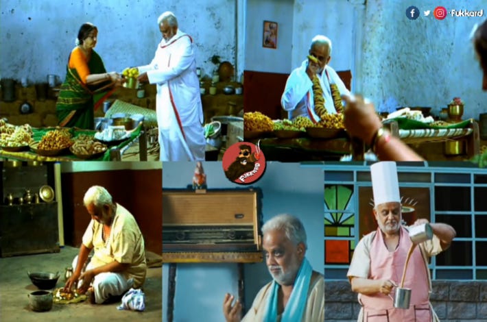 The factor of associating food with god and giving it the due respect that it deserves is weaved really well into the lives of Appadasu and Buchchi. This, in fact, asserts upon the importance of food and how it strengthens not just individuals but their relationship with others. Food, here, is seen as a reviving aspect, and that alone has the power to help sustain the bond between the couple.